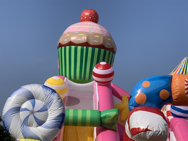 De snoepjesfabriek: muffins, lollystokken, snoepjes, ijsjes enz. ... Ontdek ze allemaal! Klim en glij dan van deze hoge glijbaan maar zorg dat je niet in de slagroom terecht komt .. haha !